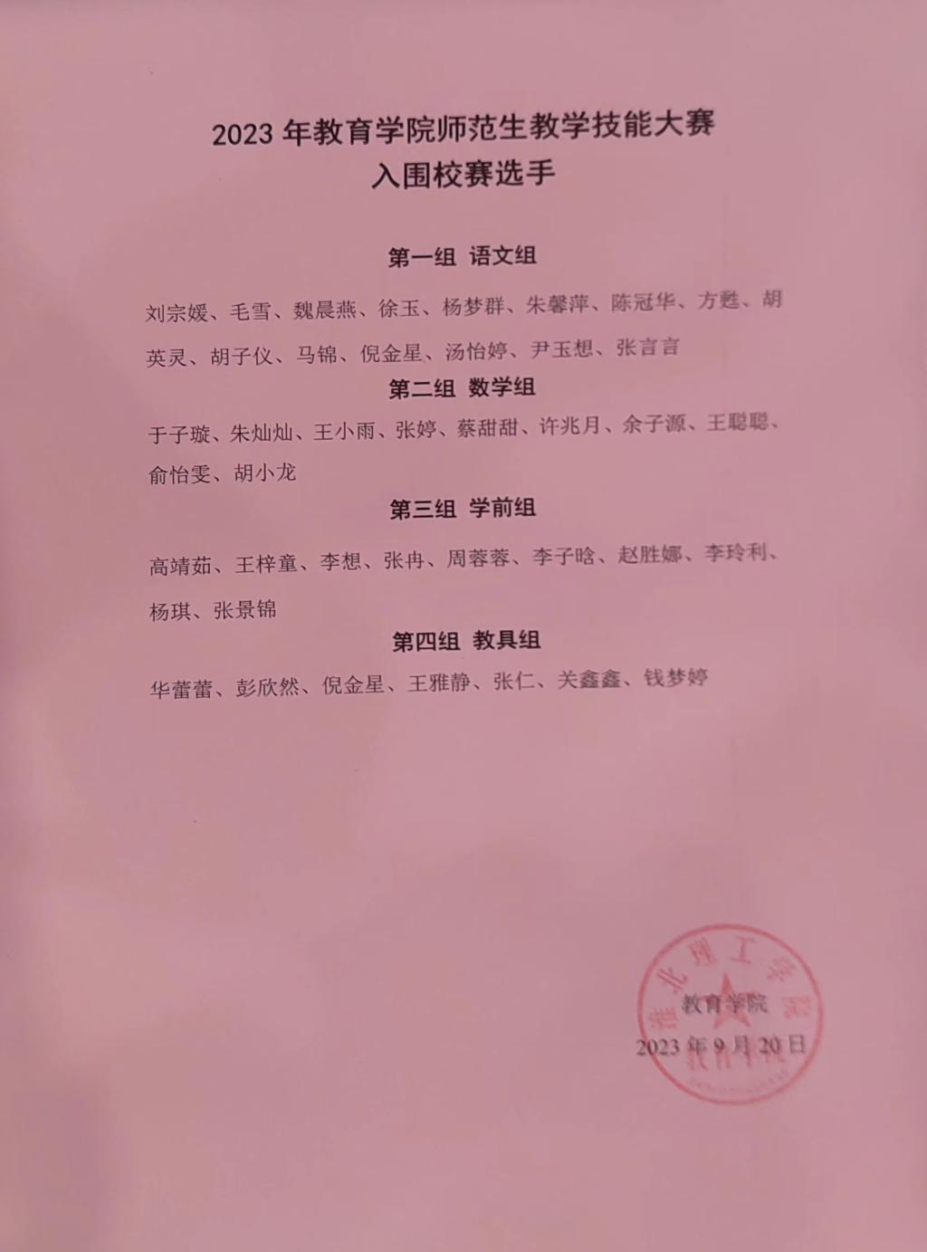 2023年PP电子游戏网站师范生教学技能大赛入围校赛名单公示