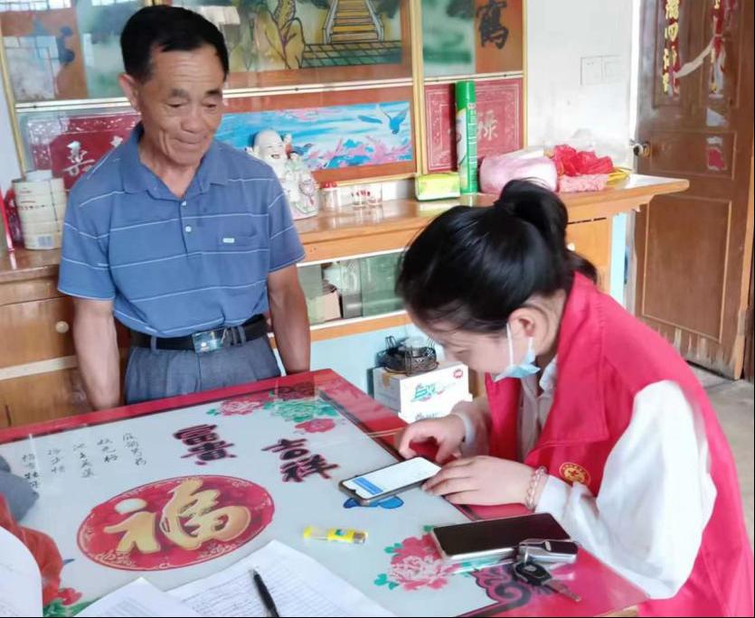 2021级汉文专升本2班杨蕾所在的团队来到合肥市庐江县双庙村普及防电诈知识,与当地村委会工作人员一起进行逐家逐户的走访,通过理论普及提高乡村群众防诈骗意识,用具体案例警醒当地村民,引导村民下载并实名注册国家反诈APP。