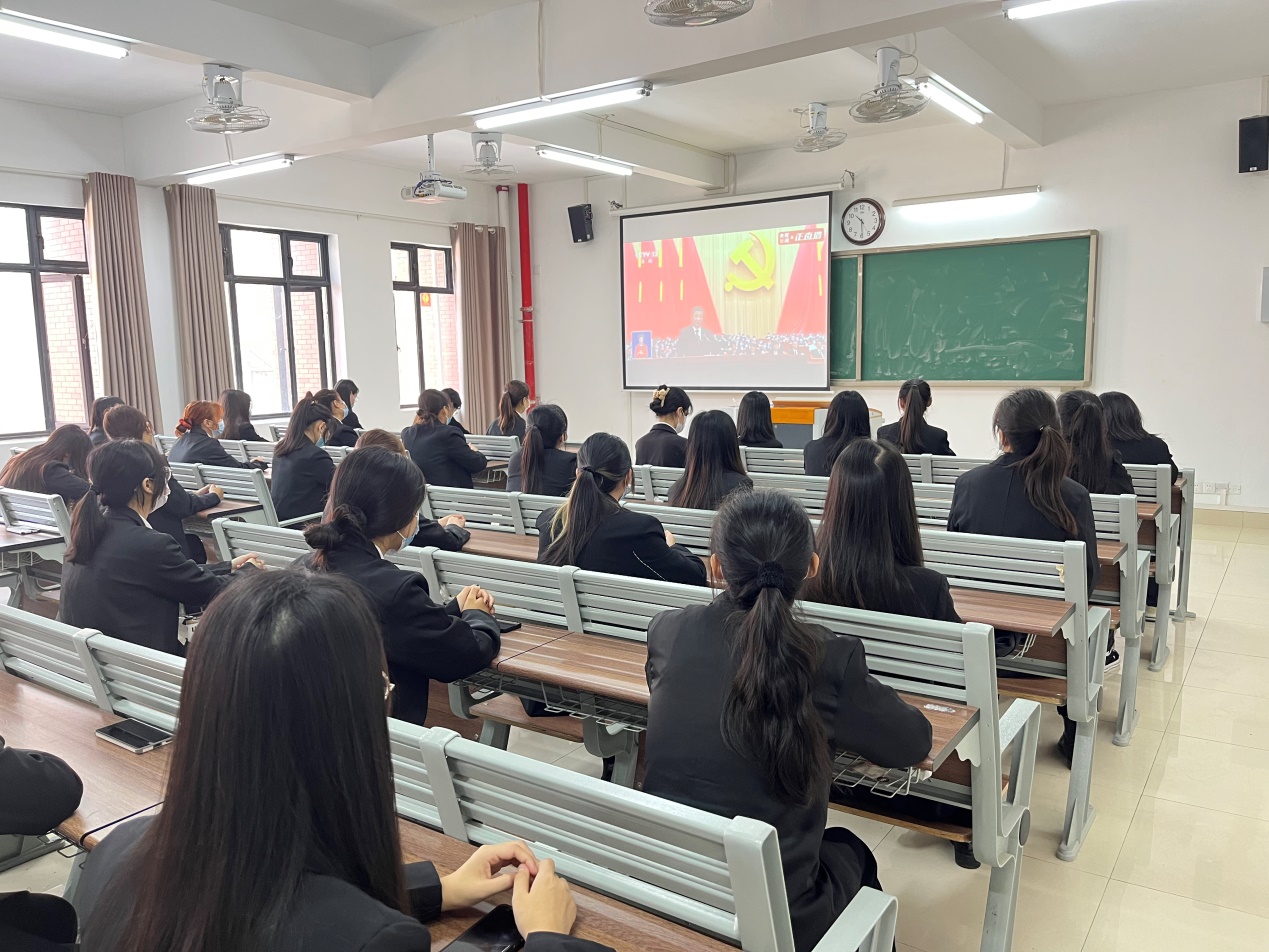 2022年10月16日上午,PP电子游戏网站组织学生党员、学生代表分别在第2教学楼412教室、413教室、414教室、415教室集中观看党的二十大开幕会盛况。