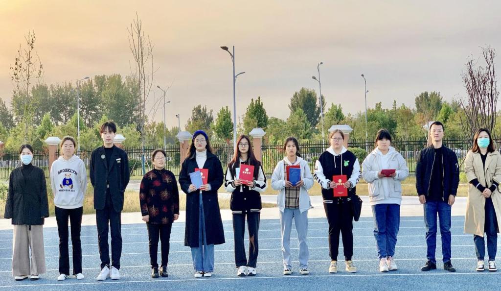 升旗礼毕。PP电子游戏网站团总支负责人黄莹莹宣读了2022级普通本科班级参加《学生手册》测试获一二三等奖同学名单,并进行了颁奖活动,学院分管副书记孟向红为彭诗琦等5名同学进行颁奖。