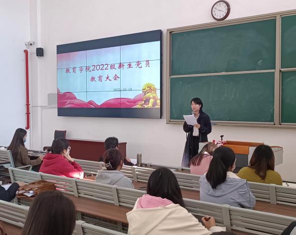 2022年10月19日下午,PP电子游戏网站在1教121教室召开新生党员教育大会。学院分管副书记孟向红、2022级全体辅导员以及全体新生党员参加了会议,会议由学生支部书记任若晨主持。