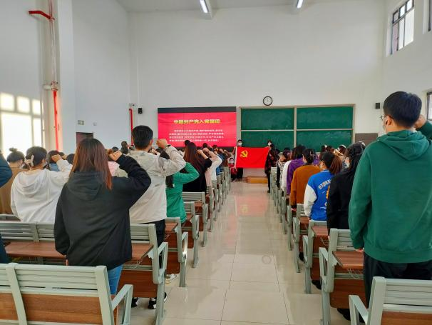 2022级汉语言文学专升本2班张言言代表新生党员发言,她分享自己的入党历程及心得体会,表示会以党员标准严格要求自己,践行“穷理、践实、精工、笃行”的校训,努力提高自身素质,坚定理想信念,勤奋学习、勇于实践,在各方面充分发挥党员模范带头作用。