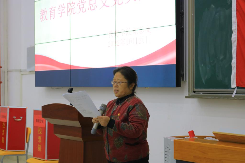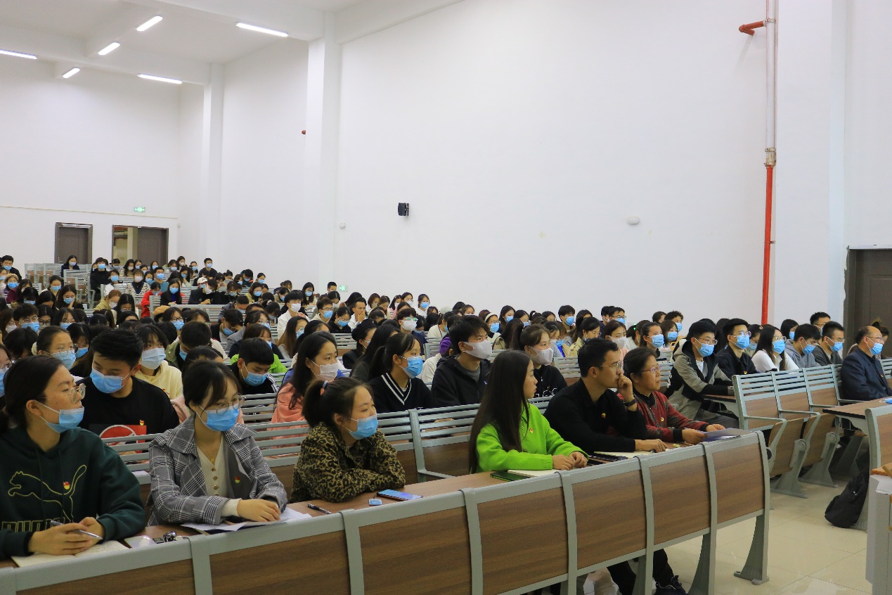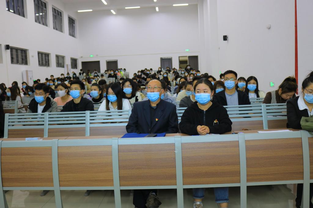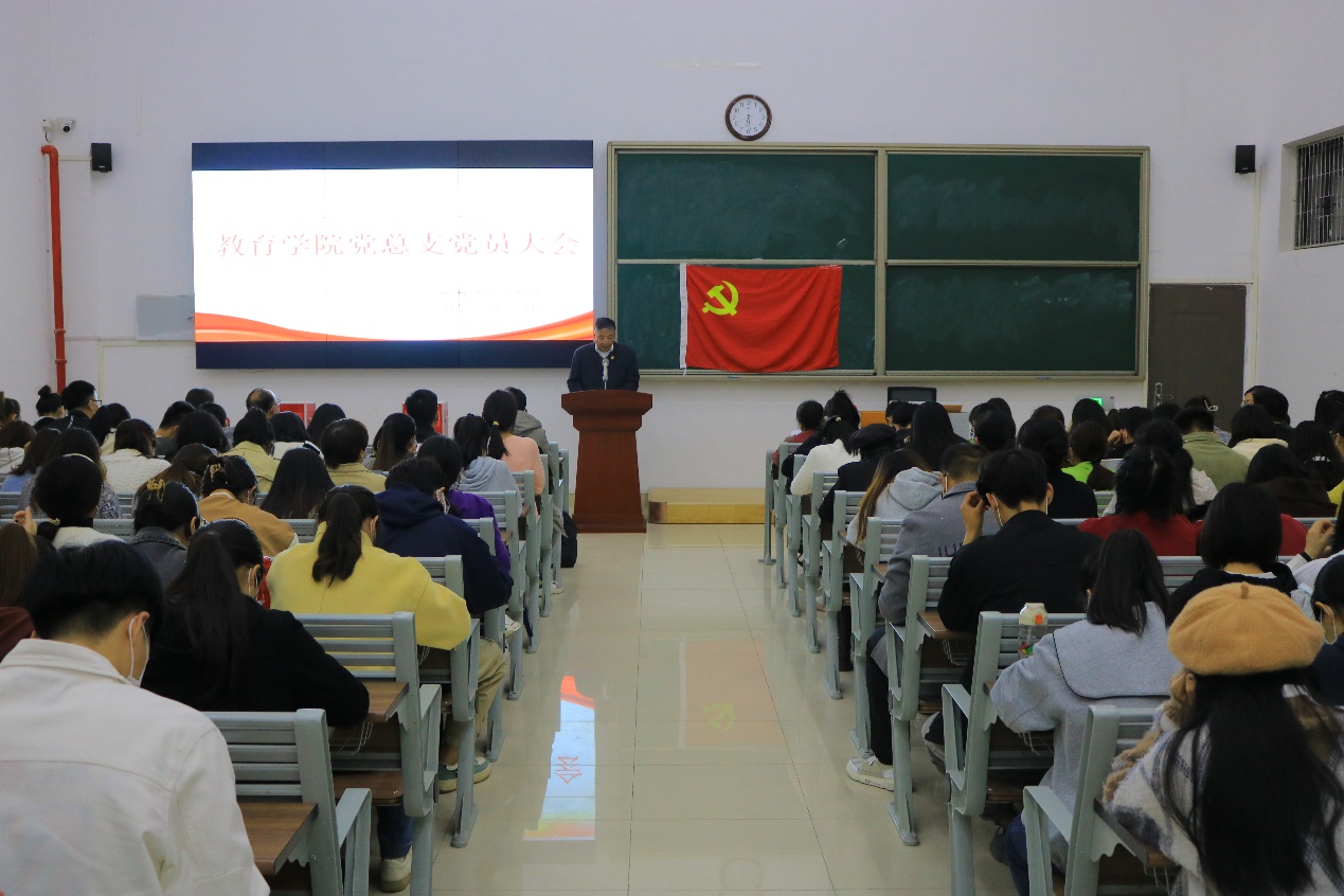 蓝图指明前进方向,实干拥抱新的征程。10月21日,中国共产党PP电子游戏网站总支部党员大会于一教121教室召开。校党委委员、党建办公室主任付金沐同志、校党建办公室陈蓓同志受邀列席本次大会,PP电子游戏网站院长王家云,副院长孟向红,全体教职工和学生党员、预备党员近200人参加本次大会。会议由学院副院长孟向红主持。