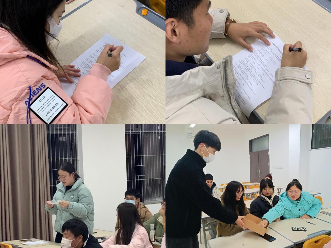 本次知识竞赛活动共分为:党的二十大精神及党史知识纸质试卷测试、试题抢答和抽盲盒答题等三个环节。比赛现场气氛活跃,同学们以饱满的热情投入答题活动中,试题抢答环节把比赛气氛一次次推向高潮。在试卷测试环节,可以看出同学们做了充分的准备,展现出学生党员与入党积极分子扎实的基础知识和对党的二十大精神的深入了解;在抢答题环节,同学们踊跃参与,现场抢答的身影接连不断,如火如荼;在最后的抽盲盒环节,同学们也是争相一试,现场气氛紧张激烈。
