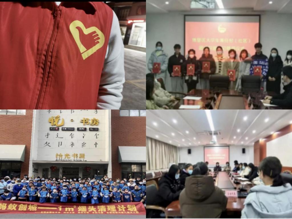 左下:22级数学2班戈晶晶参加合肥市瑶海区烟头清理计划