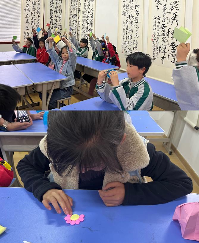 活动分为两组,第一组志愿者带领二、三年级的同学们做手工活动,首先是用彩纸折一顶帽子,用“帽子”的用途引导小朋友们认识、了解“雷锋”,知道雷锋叔叔的形象特征,知道帽子的用途具有抗寒性。接着志愿者们又用携带的超轻黏土,指导小朋友们捏制一朵小花敬献给亿万人民学习的榜样雷锋叔叔。小朋友们在简单的手工制作中认识和了解了雷锋。第二组志愿者以讲故事的方式向四、五年级的同学介绍雷锋的事迹,让小朋友们认识到,要学习雷锋助人为乐、与人为善的优良品德。引导小朋友们继承优良传统,从身边小事做起、从点滴做起,在学校帮助小朋友,在家里尊敬父母,争做新时代小雷锋。
