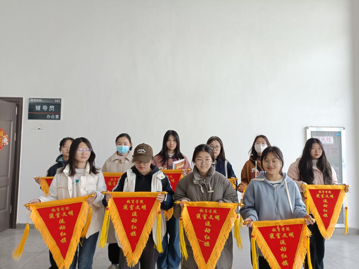 在“第35个爱国卫生月”活动中,学院坚持“文明寝室”创建工作,常态化开展文明宿舍评选活动,同学们人人参与,将寝室物品摆放整齐,环境打扫干净,学院为优秀寝室颁发流动红旗,同学们也在寝室文明创建中收获了整洁的环境与美好的心情。