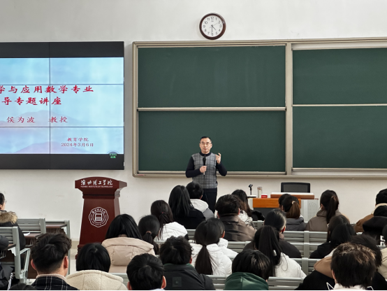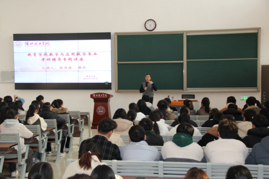 大会邀请数学博士侯为波教授作专题报告。侯教授用充满激情和节奏感的语调为大家带来了一场生动有力的精彩报告。首先,他为大家详细分析了当前的考研形势,阐述了考研的重要性,引导学生们正确认识考研的价值和意义,让在场的每一个人都强烈地感受到了考研的魅力和挑战。随后,侯为波教授针对数学与应用数学专业的特点,同时结合自身多年的教学和研究经验,从专业选择、学校选择、时间安排等方面进行了详细的介绍,激发大家考研的积极性和学习的进取心,并且提供了针对性的备考策略和方法。