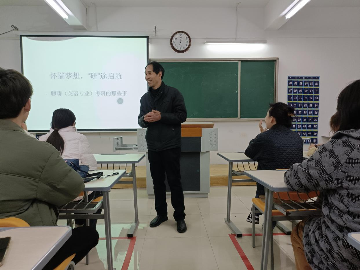 3月13日晚7点,PP电子游戏网站在二教322教室开展英语专业考研辅导专题讲座。本次讲座面向2021级、2022级普本、2023级专升本学生。讲座由PP电子游戏网站副院长谢贤德副教授主讲,全体英语教师列席。此次讲座旨在为我校英语专业考研学生提供英语考研的相关信息和备考策略,帮助他们更好地准备即将到来的考研挑战。