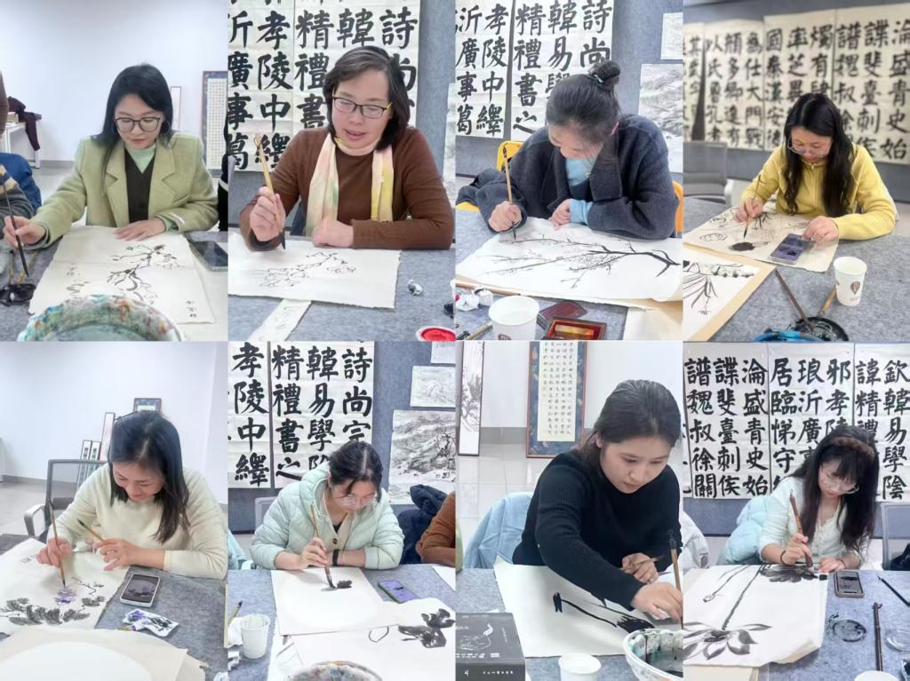 在掌握基础技巧后,老师们纷纷拿起毛笔,各展身手投入创作。大家根据自己的喜好和擅长,自主选择临摹题材。有的钟情于清雅脱俗的兰花,笔下的兰花幽香淡雅,笔墨间尽显对美好事物的向往;有的偏爱生动鲜活的人物,寥寥数笔便勾勒出神态各异的形象,传递出人物的精神状态;还有的专注于矫健的骏马,挺拔的身姿跃然纸上。创作过程中,老师们相互交流心得、切磋技艺,遇到难题时主动向任教师请教,现场既洋溢着浓厚的学习氛围,又充满了轻松愉悦的互动气息。