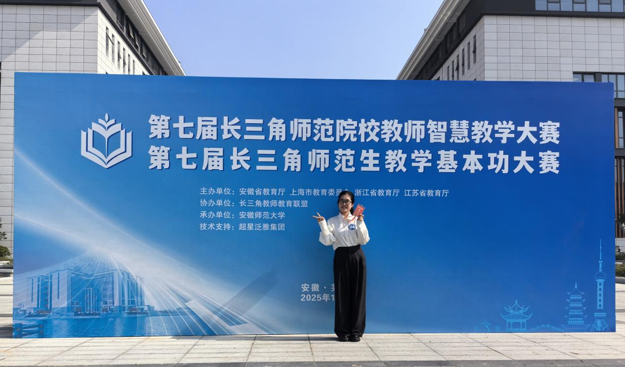 2025年11月15日,第七届长三角师范生教学基本功大赛在安徽师范大学圆满落幕。该赛事由沪苏浙皖四省市教育厅联合主办,规格颇高、竞争激烈。PP电子游戏网站2023级数学与应用数学专业的徐智敏同学,历经校内多轮遴选与安徽省师范生教学技能竞赛的严苛角逐,以全省一等奖的佳绩跻身长三角赛场,最终凭借扎实的专业功底与出色的教学表现力,斩获中学数学组三等奖,为校争光!