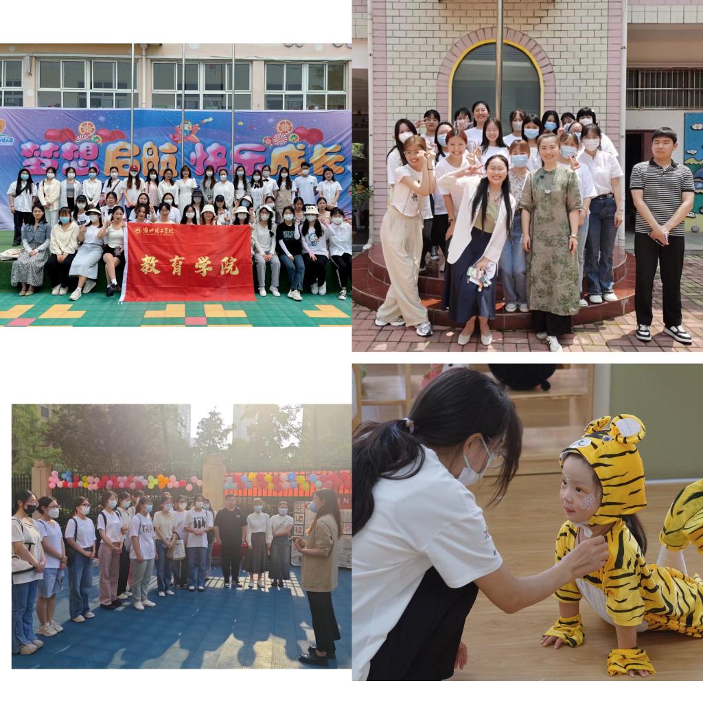 第二阶段“走近童心,潜心观察”见习活动始于5月30日。这一天,全体同学在学院老师的带领下,走进淮北市17所幼儿园,根据园方的精心安排,观摩了幼儿园活动室内外环境、观看了幼儿一日活动、自主游戏活动的组织方法及常规要求,了解教师和保育员如何共同做好班级的保教工作,走进大中小班,零距离跟班学习。更让同学们激动万分的是,见习期间居然幸运地遇上“六一”儿童节!于是,她们参与到班级游园活动中,和孩子们一起装扮教室、摆放礼物、玩小游戏、表演节目,陪伴孩子们度过了一个愉快、难忘的节日。