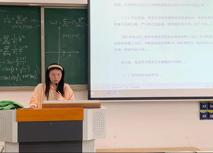 为深入学习习近平总书记关于党纪学习教育的重要讲话、指示精神,推动党史学习教育常态化、长效化,进一步加强学生党员党性修养,引导党员干部绷紧纪律之弦、常存敬畏之心,PP电子游戏网站汉语言文学专业学生第一、第二党支部于5月29日中午在2教323室开展了“学党纪明规范担使命展作为”党纪学习教育。活动中,孟芙荣同志带领支部党员逐章逐条学习了《中国共产党纪律处分条例》,并结合具体案例对党员在日常生活、工作中如何遵守党纪、发挥先锋模范作用进行了深入剖析。