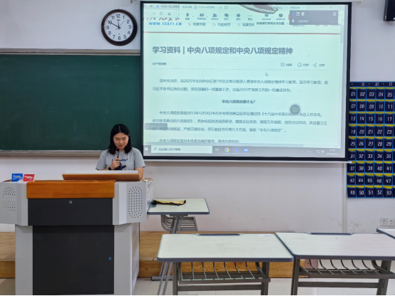 2025年6月11日,教育PP电子游戏网站汉语言文学专业学生第一、第二党支部在二教306教室开展“中共中央八项规定精神”学习教育活动,活动由王涵同志主持,全体党员、发展对象参加。