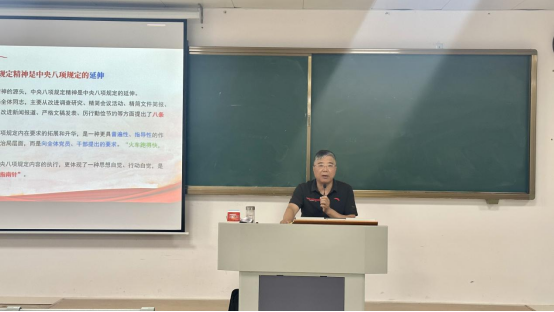 为深入贯彻中央八项规定精神,6月12日晚,PP电子游戏网站在1教320教室组织开展学生党员、发展对象“深入贯彻中央八项规定精神”专题党课学习教育活动,学院党总支书记、院长王家云同志为参会的学生党员和发展对象授课。