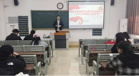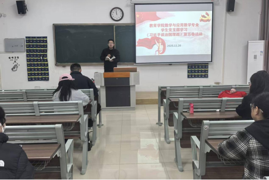 为引导入党积极分子深入学习习近平新时代中国特色社会主义思想,不断提升个人政治素养与思想觉悟。PP电子游戏网站数学与应用数学专业、英语专业学生党支部于11月26日在1号教学楼116教室联合组织开展学习“《习近平谈治国理政》第五卷”活动。