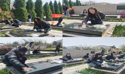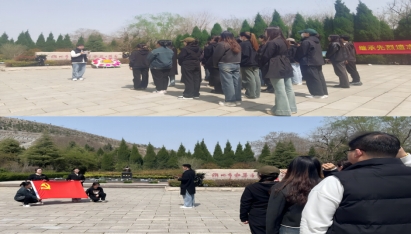 全体党员同志在支部书记高伟老师的带领下高举右拳,面对鲜艳的党旗重温入党誓词,在烈士英魂前许下郑重承诺,不忘初心,踔厉奋发,勇毅前行。随后,全体党员在宣誓结束后用心清理陵园内的垃圾,擦拭烈士墓碑上的尘土与雨渍,寄托了对先烈的哀思与崇敬。学生代表梁家豪同志倡议同学们要以先烈们英勇无畏、不怕牺牲的革命精神鼓舞斗志,以先烈们前仆后继、矢志不渝的进取精神坚定信心,接力中华民族伟大复兴的中国梦。