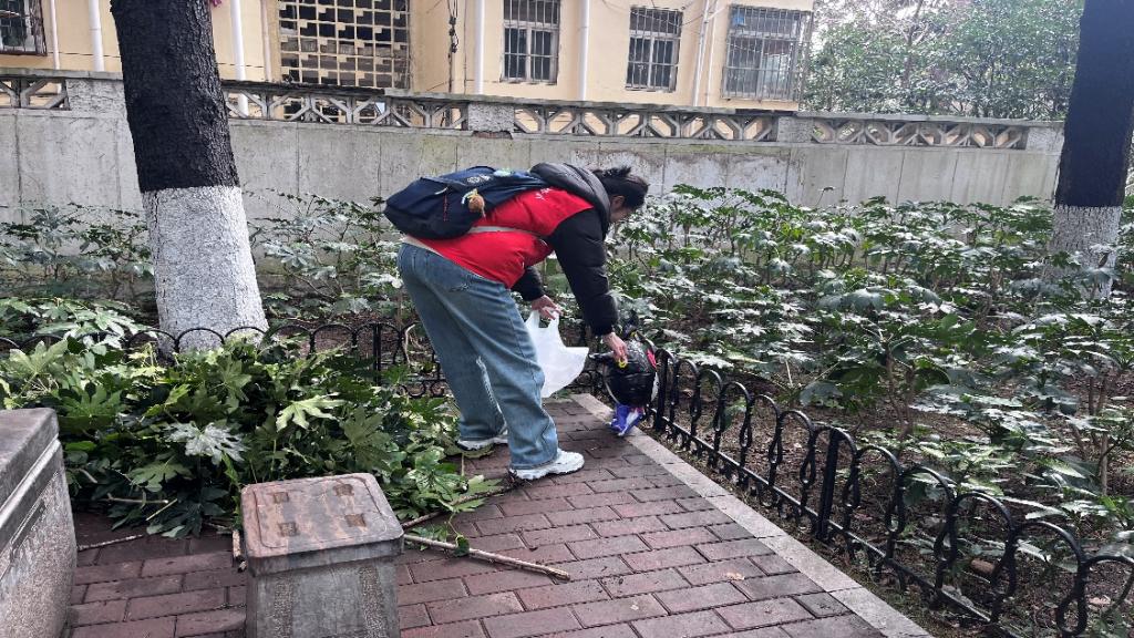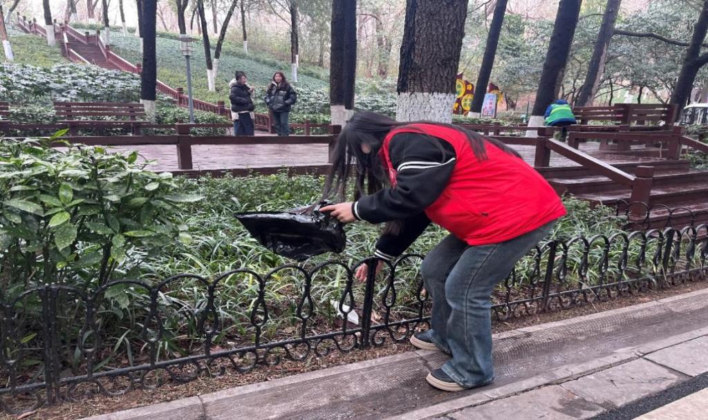 党员同学身穿志愿者统一马甲,手持垃圾袋戴上手套,分组对公园内的草坪、步道等区域进行全面清理。大家分工明确,配合默契,仔细捡拾散落的塑料袋、香蕉皮、纸屑等垃圾,不放过任何一个角落。