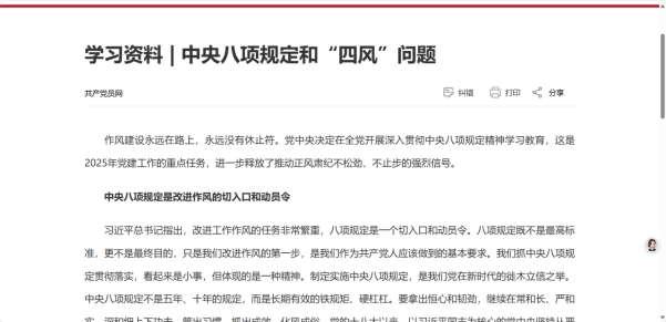随后,全体党员共同学习了材料——中央八项规定和“四风”问题。党员教师们结合自身工作实际,认真对照检查,深刻反思在日常工作中可能存在的形式主义、官僚主义、享乐主义和奢靡之风问题。通过学习,大家明白要时刻保持清醒头脑,严格遵守中央八项规定精神,坚决抵制“四风” 侵蚀,切实做到廉洁自律、勤勉敬业,树立良好的教师形象。