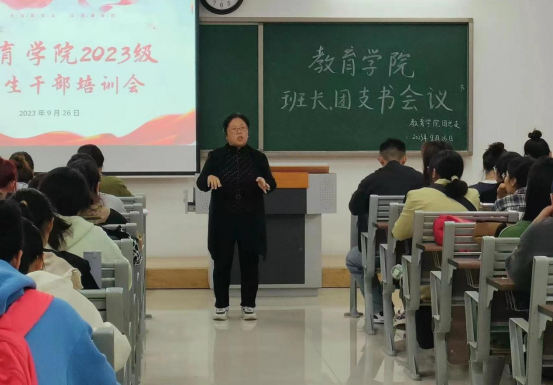 为进一步强化学生干部队伍建设,发挥学生干部模范带头作用,促进学院学生管理工作的有序开展,9月26日下午,PP电子游戏网站在1号教学楼520教室召开2023级学生班级班长、团支书培训会。学院分管副书记孟向红、书记助理黄莹莹、团总支副书记许海涛、2023级全体辅导员以及2023级全体班长、团支书参加了本次培训会。