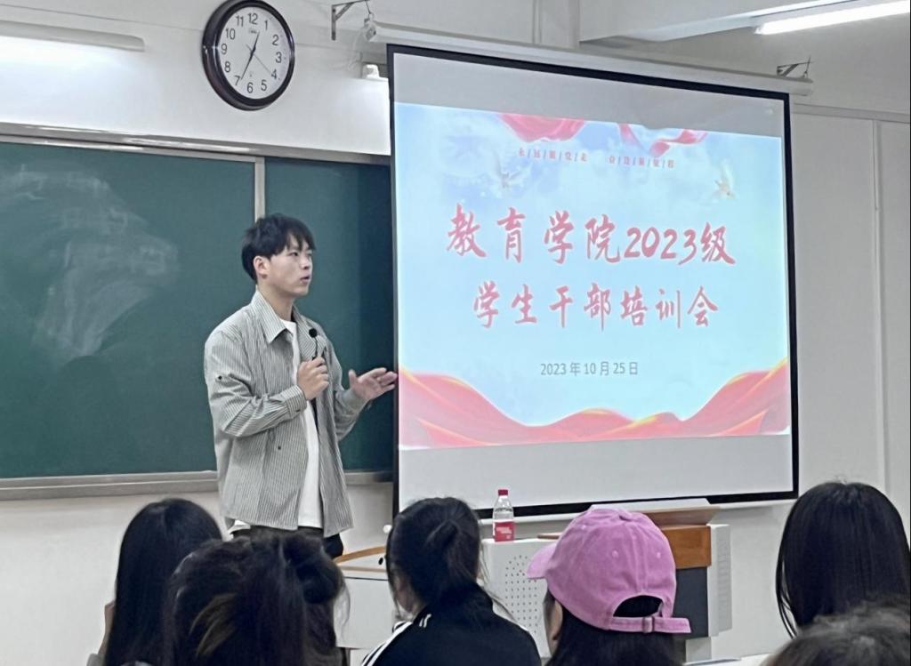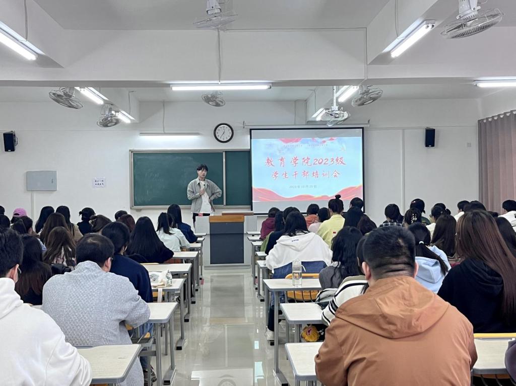 为进一步提高我院学生干部的综合素质和业务能力,强化学生干部服务意识、团队合作意识和凝聚力,扎实地推进我院学生管理工作。10月25日中午12点,在2号教学楼322室召开2023级班长、团支书培训会,会议由PP电子游戏网站辅导员郭鸿鑫主持,2023级全体班长、团支书参加本次会议。