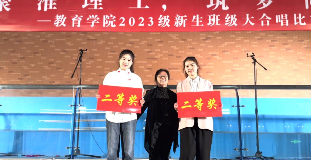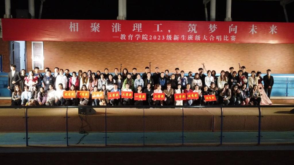 “相聚淮理工,筑梦向未来”,每一支合唱队的呈现都反映了同学们凝心聚力,筑梦未来的激情与向往。经过现场展示、评委打分,最终,23级学前对口3、4班合唱队演唱的“南泥湾”荣获一等奖;23级学前1班、英语1班合唱队演唱的“如愿”,23级学前专升本3、4班合唱队演唱的“我是如此相信”分获二等奖;23级学前对口1、2班合唱队演唱的“隐形的翅膀”、23级学前专升本5、6班合唱队演唱的“一路生花”、23级学前专升本9、10班合唱队演唱的“明天会更好”分获三等奖;23级汉文专升本7、8班合唱队演唱的“奔跑”、23级汉文9、10班合唱队演唱的“最美的太阳”、23级汉文7、8班合唱队演唱的“闪耀”、23级汉文专升本1、2班合唱队演唱的“歌唱祖国”分获优秀奖。