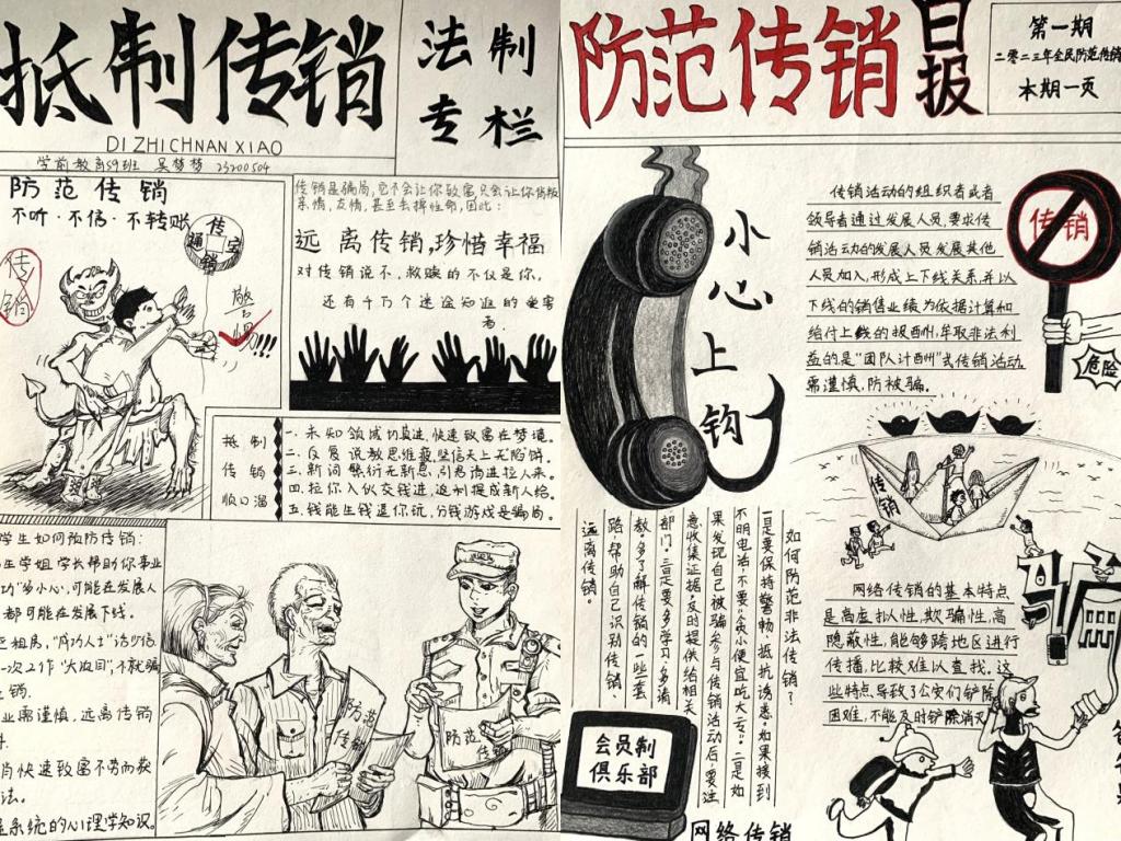 本次短视频和手抄报作品征集活动,深化了同学们对传销违法犯罪性质、欺诈本质和带来的危害的认识,不贪小,不信大,引导大家自觉履行反传销义务,有利于同学们提高自觉防范和抵制传销的意识,从而筑牢思想防线,构建更加和谐、纯净的校园环境。