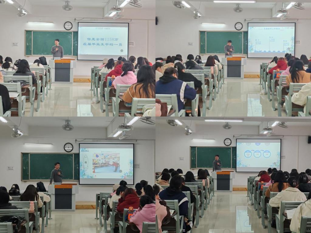 就业宣讲中,中公教育的老师向同学们介绍公司的发展和人员招聘情况,希望有志于教育培训的毕业生积极向他们投递简历。宣讲老师还向同学们介绍了获取就业信息的一般途径。在如今竞争日益激烈的就业市场上,掌握有效的就业信息获取渠道能大幅降低就业的难度,让同学们赢在起跑线上。接着又讲述了考公考编的方法与方向,还增加了问答互动环节,使同学们对考公考编有了更深刻的认识,对自己的未来有了更明确的规划。
