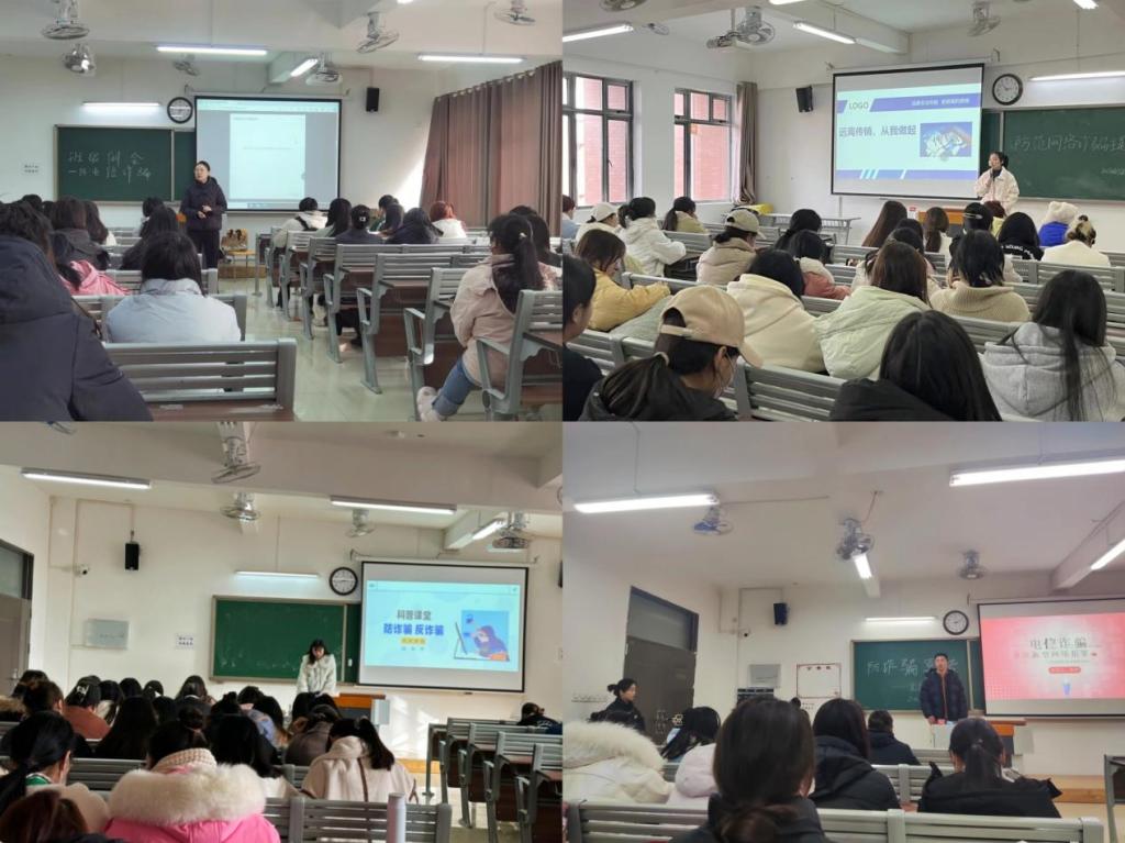 为最大限度降低广大青年学生财产损失和遭受电信诈骗发案率,提高广大青年学生的警惕意识和辨识应对电信诈骗的能力。12月6日下午,PP电子游戏网站再次在全院50个新生班级中开展“筑牢安全防线,防治电信网络诈骗”主题教育活动。本次活动学院精心组织,带班辅导员老师精心准备。活动由2023级带班辅导员主持,其他年级辅导员分别到会指导。