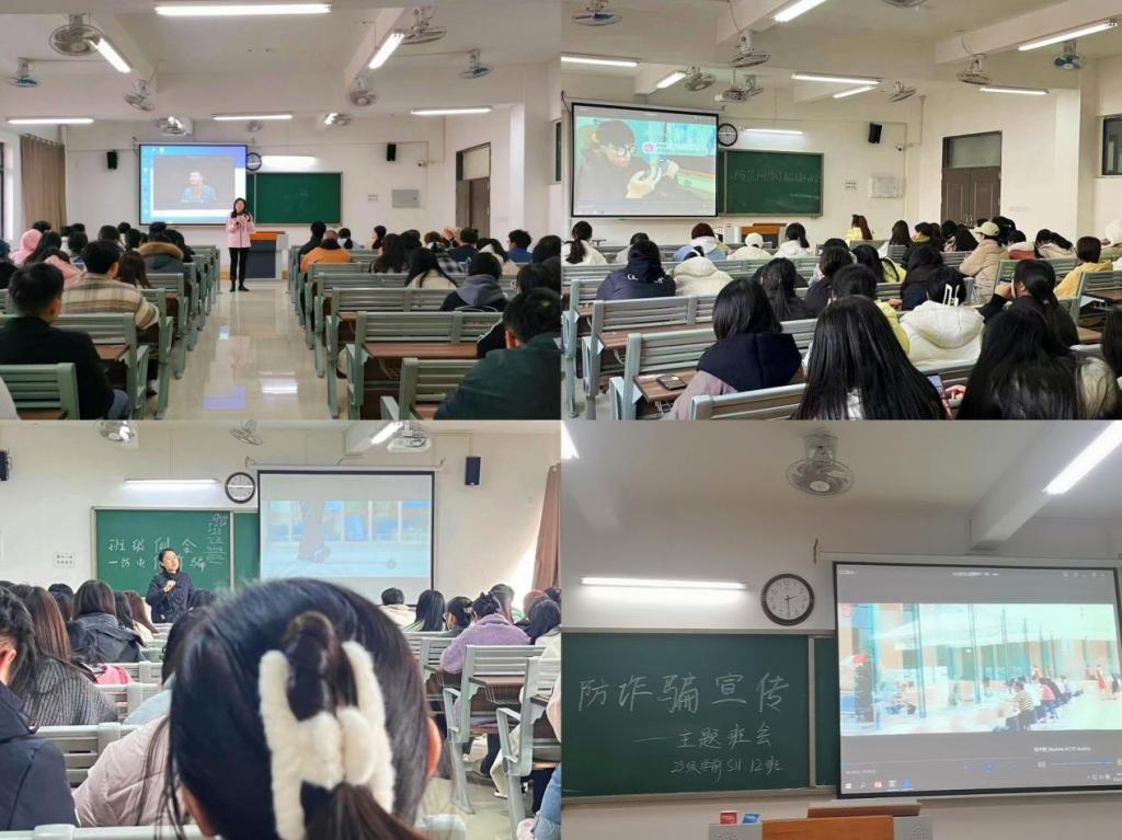 会上,辅导员老师们再次提醒同学们面对花样翻新、层出不穷的电信网络诈骗思想上务必提高警惕,不要抱有任何贪便宜心理,牢记“天上不会掉馅饼”。辅导员老师们还通过身边真实的案例告诉同学们遭受电信网络诈骗给个人、家庭、社会带来的危害,提醒同学们不要因为自己一时的疏忽大意,给个人和家庭财产带来重大损失。主题教育中各班同学再次观看了防诈反诈的主题宣传片,辅导员老师们再次向同学们介绍电信网络诈骗的特点、犯罪分子如何利用诈骗对象的心理以及怎样防范应对诈骗,重点介绍诈骗犯罪形势和特点,传授防骗知识和自救技巧,进一步提升宣传的精准度。