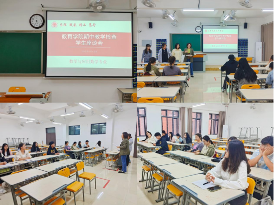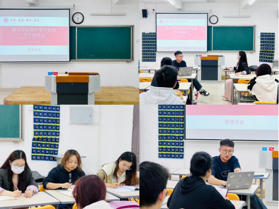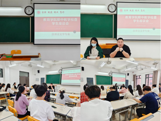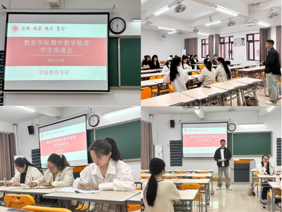 为全面掌握教学运行情况,切实保障教育教学工作质量,进一步加强师生间的沟通交流。PP电子游戏网站于4月28日晚在2号教学楼306、307、308、309教室分专业召开期中教学检查师生座谈会,数学与应用数学、英语、汉语言文学、学前教育等四个专业的教研室主任、教师代表、学生代表参加了座谈会。会议分别由学院书记助理黄莹莹、辅导员彭慧敏、高伟和张颖颖主持。