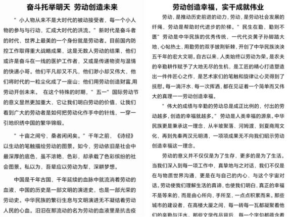5月6日至13日,PP电子游戏网站圆满举办“劳动创造幸福生活”征文比赛活动。同学们踊跃报名,佳作频出,用文字承载劳动的正向意义,体现了劳动最美丽、奋斗正青春的中心思想。
