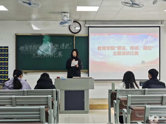 为落实学校“关于开展2024年‘普法、修德、遵纪,创建文明校园'专项活动的通知”精神,促进同学们更好地做到“学法懂法守法”,让立德树人理念更加深入人心,PP电子游戏网站于11月27日在1号教学楼206、207教室举办“普法、修德、遵纪”主题演讲比赛。此次比赛由2024级班主任老师担任评委。