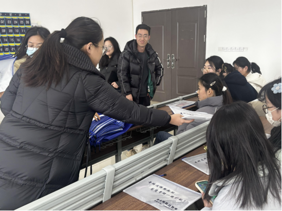 活动现场,毕业班辅导员老师们为考研学子们一一分发了精心为他们准备的“考试文具包”和用心制作表达老师们对考研同学深情祝福的精美“书签”。同学们被这些承载着祝福与激励的小小的礼物感动了,大家虽然学习疲惫,此刻脸上却洋溢着幸福的微笑。
