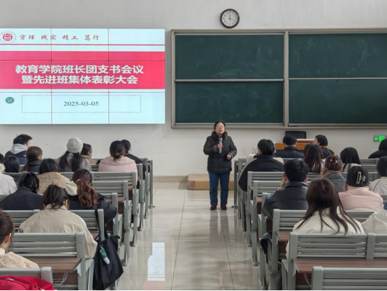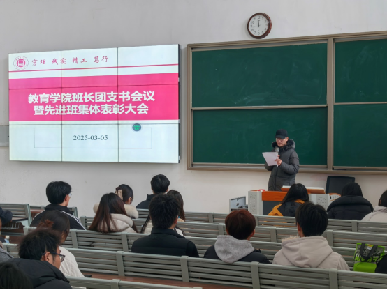 为促进班级管理交流,增强各班学生干部工作能力和激励全院班级努力营造良好班集体氛围。3月5日中午,PP电子游戏网站在一号教学楼121教室开展了“班长、团支书会议暨先进班集体表彰大会”。会议由学院团总支副书记许海涛主持,分管副书记孟向红、书记助理黄莹莹、24级全体辅导员以及各班班长、团支书参加了会议。