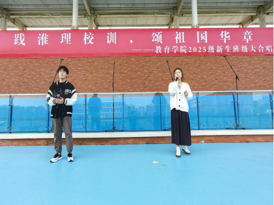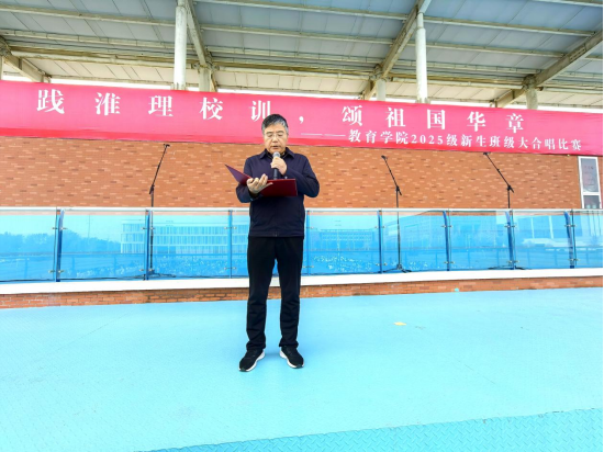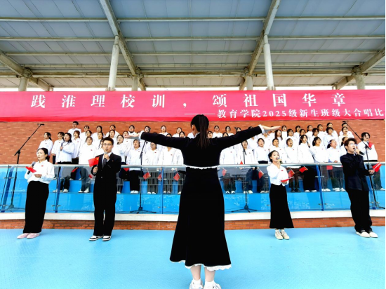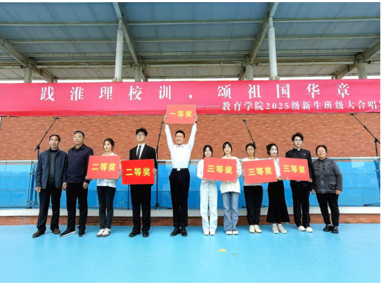 为弘扬爱国主义精神,厚植家国情怀,引导2025级新生深入理解并自觉践行校训精神,10月29日下午,PP电子游戏网站在操场举办“践淮理校训,颂祖国华章”2025级新生班级大合唱比赛。2025级共30个班级1000多名同学组成15支队伍参加比赛。学院党总支书记(院长)王家云、分管副书记孟向红、副院长谢贤德、校团委书记刘帅克、学院全体辅导员以及2025级全体新生共同参加了本次活动。